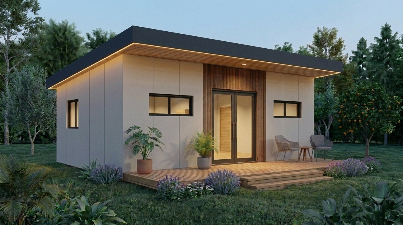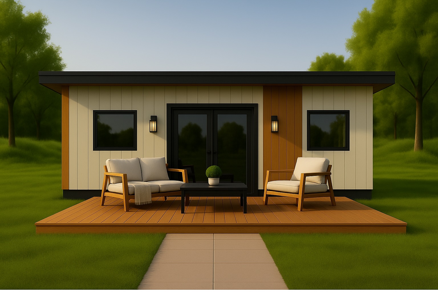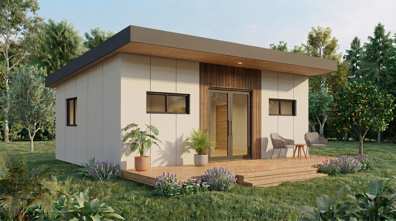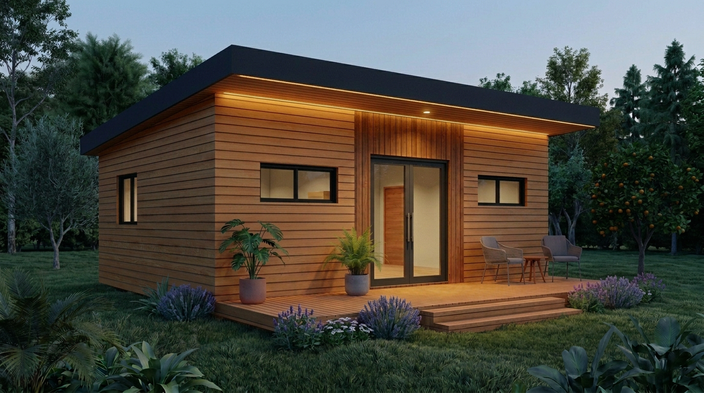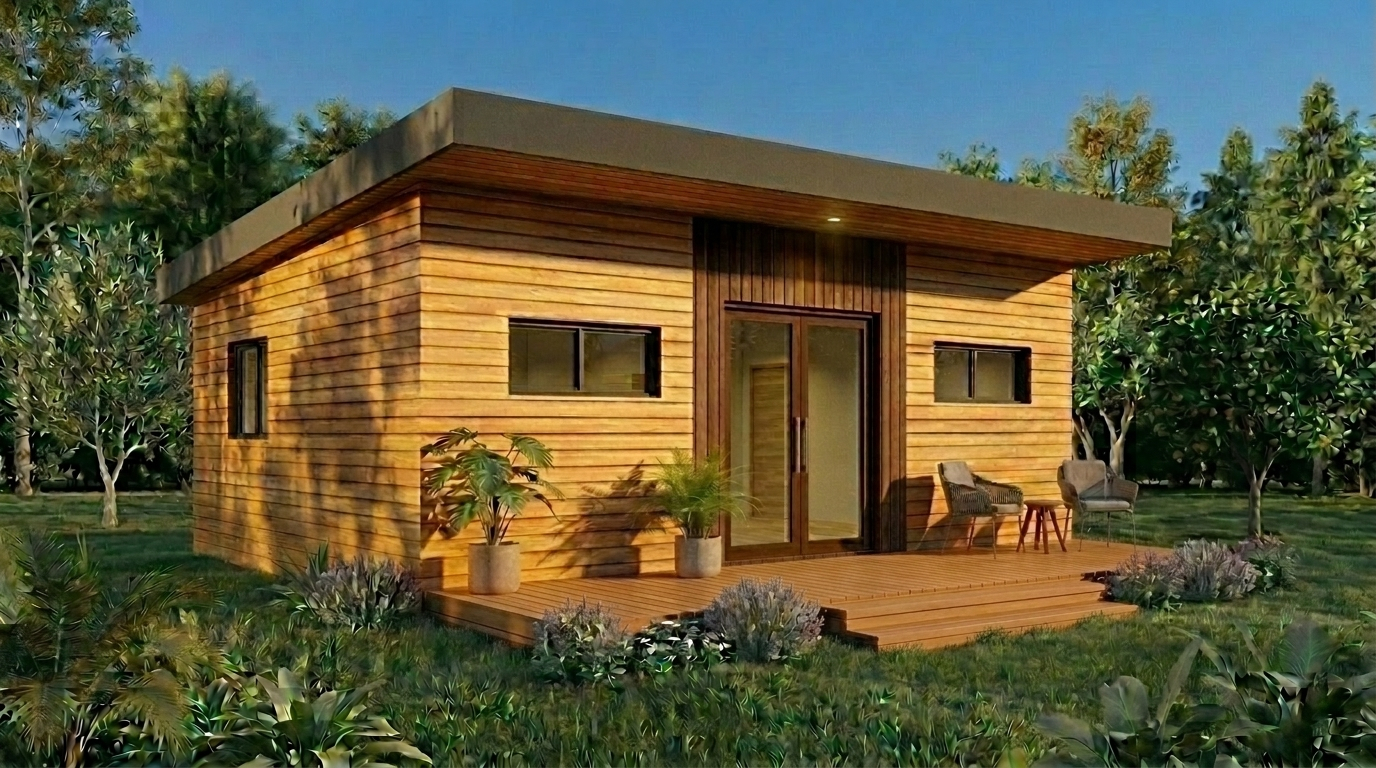 Con 51,89 m², este modelo combina forma y función de manera equilibrada: volumen compacto, líneas puras y terraza protegida bajo el voladizo. Ideal para quienes buscan un espacio esencial con una presencia arquitectónica clara y elegante.