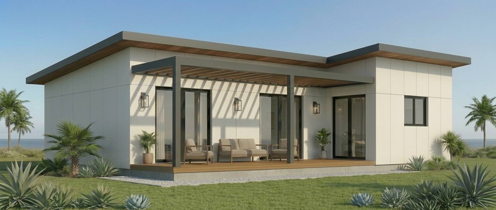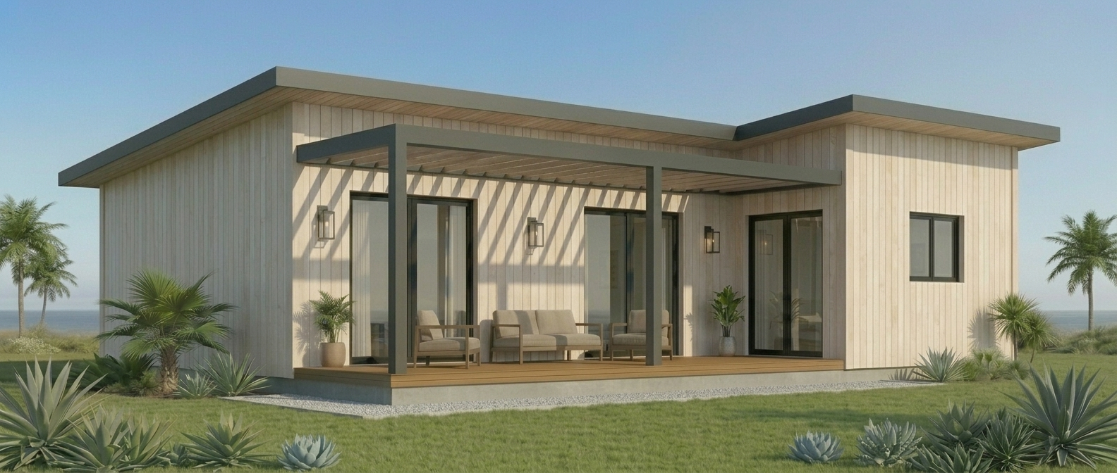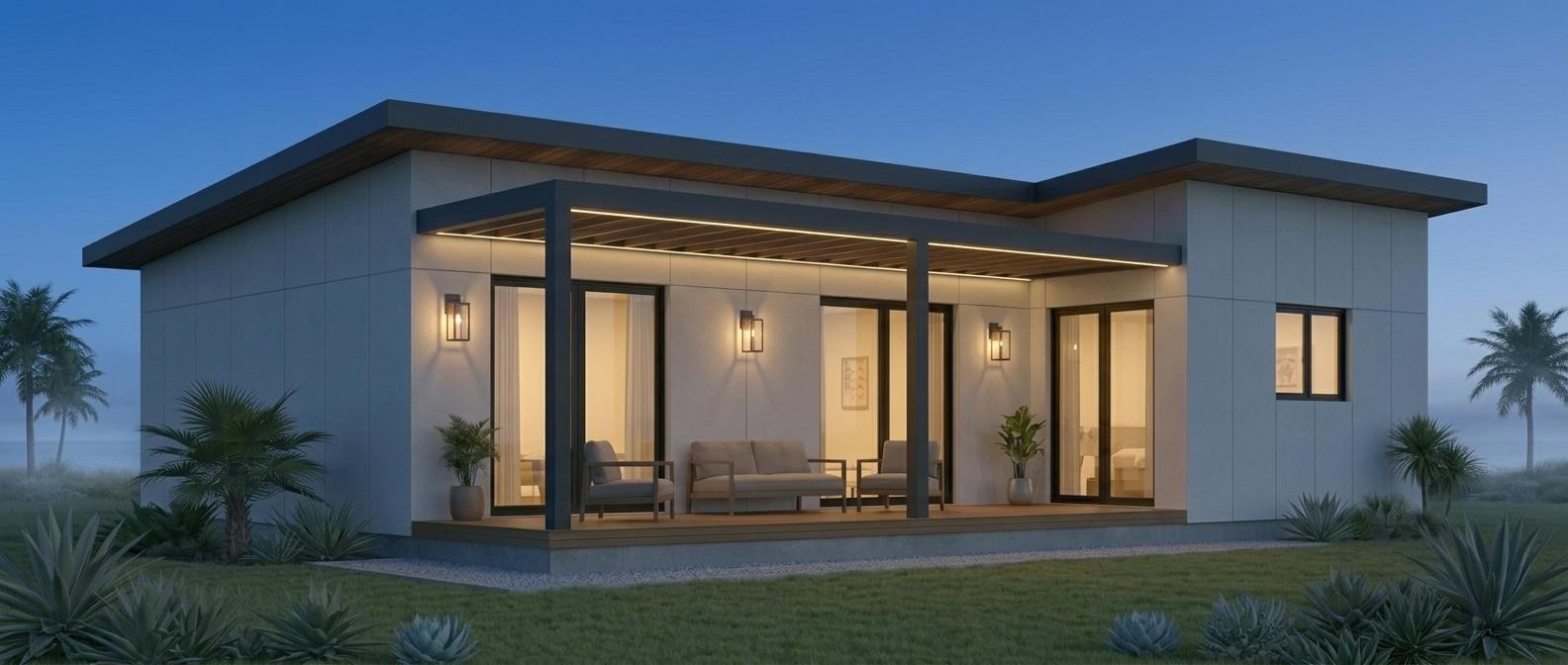 Cimentación no incluida. Cocina, sanitarios, enchufes y luminarias no incluidos. Conexiones finales por cuenta del cliente.